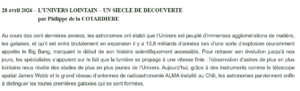 L’Association Astronomique de l’Ain a eu le plaisir d’entamer l’année 2026 par une collaboration avec l’Harmonie de Bourg en Bresse, à l’occasion d’un concert sur le thème : « Harmonie des Etoiles ». En marge du concert, donné sur deux séances, les 24 et 25 janvier, nous avons installé dans le grand hall de l’Amphitorium de Bourg-en-Bresse une exposition de photos (entièrement réalisées par des membres de l’AAA), et aménagé un emplacement pour installer le planétarium aimablement mis à notre disposition par l’association « Le Planétarium Bressan ».