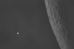 Après un très joli lever au petit matin, où elle se trouvait, sous forme d’un fin croissant en conjonction avec Vénus et l’étoile Régulus, la Lune s’est rapprochée de Vénus tout au long de la matinée, jusqu’à passer devant la planète en la cachant pendant environ une heure.