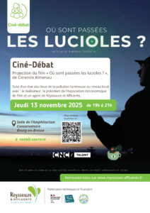 Une table ronde suivra la projection du film « Où sont les lucioles », de Corentin Kimenau (membre de l’organisation Dark Sky France), avec des représentants du Syndicat du Bassin Versant de la Reyssouze et de l’Association Astronomique de l’Ain.